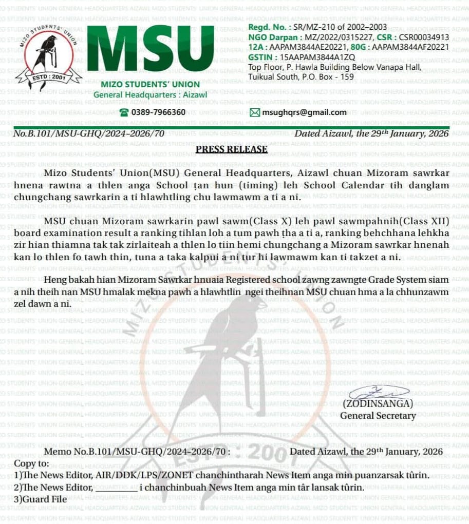 Tualchhung NewsMSU-in board exam result a ranking tihlan loh ṭha an ti.